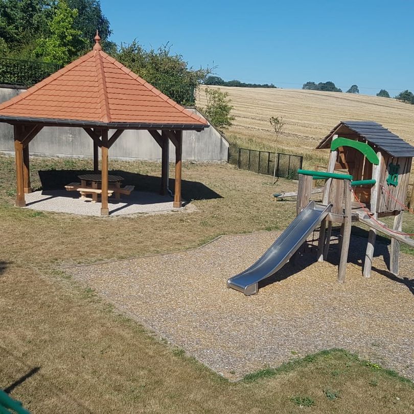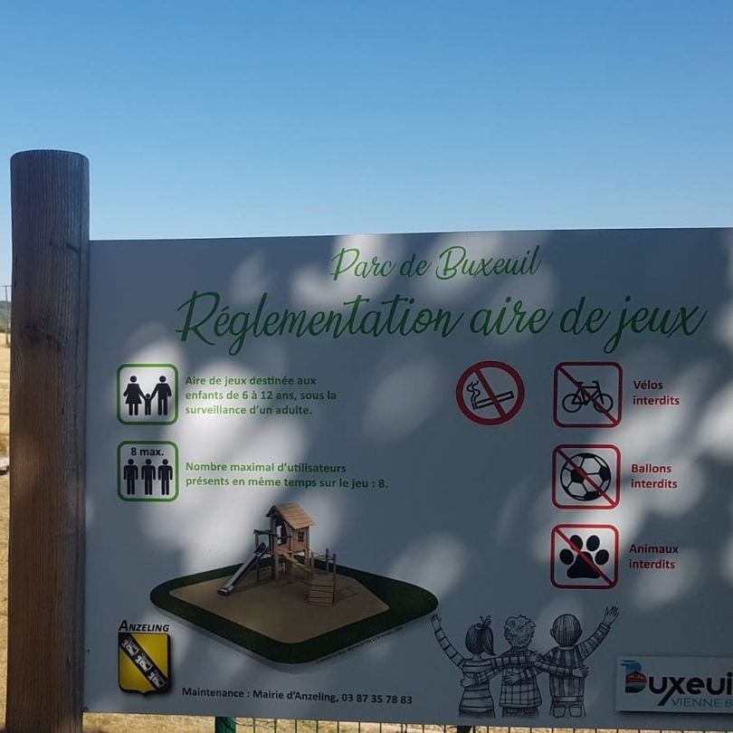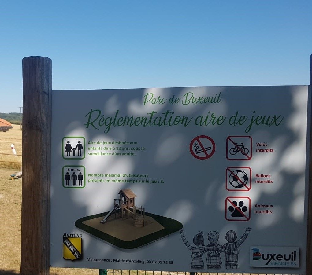 Une aire de jeux avec toboggan et bascule est accessible librement au parc de Buxeuil, situé à l’arrière de la mairie.