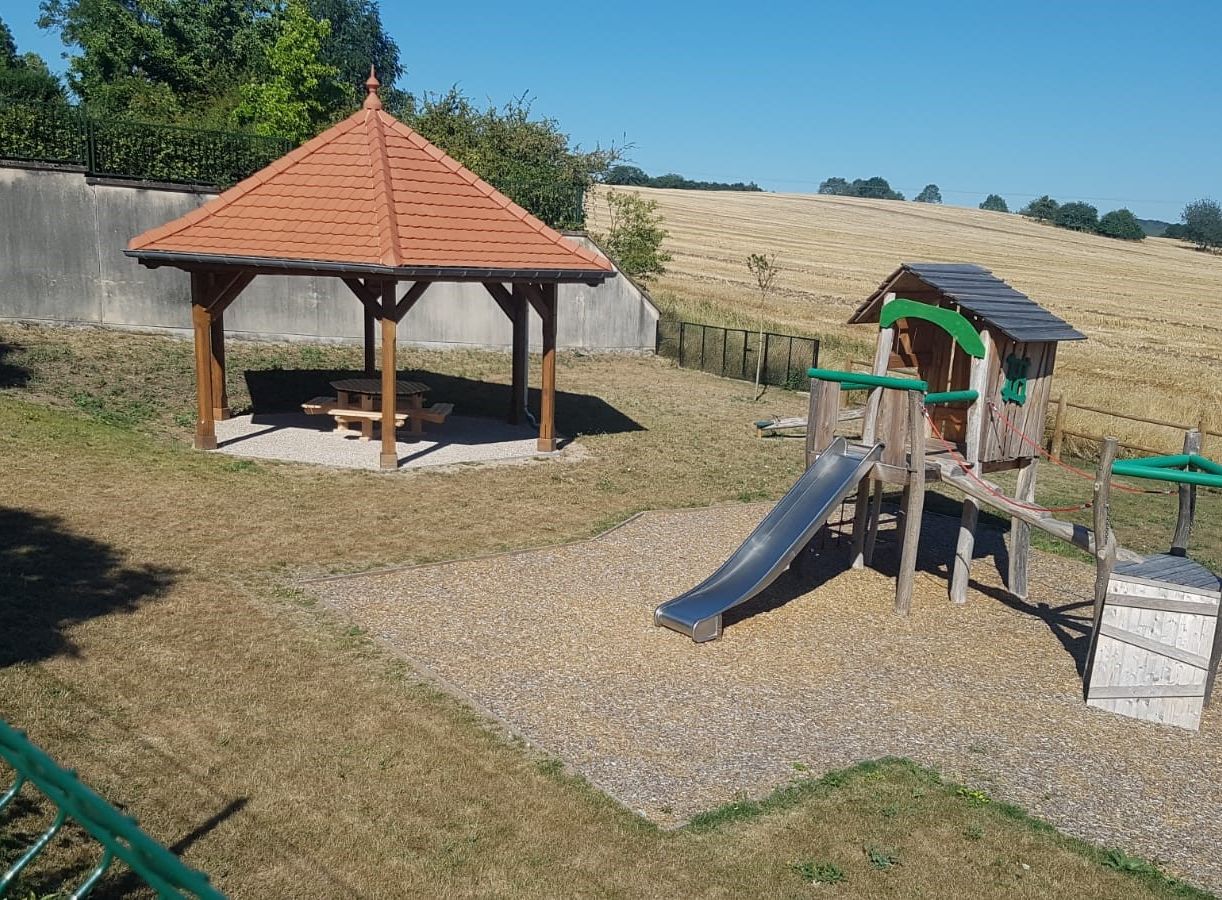 Les adultes trouveront un espace confortable sous le kiosque situé à proximité.